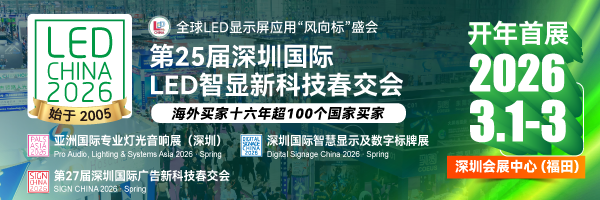 “演艺 + 餐饮” 正成为国潮消费浪潮下的新热点,传统产业与文化元素的跨界融合成为商业创新的核心路径。沉浸式国风餐饮以文化为核、体验为翼,通过LED超高清屏创意呈现、声光视讯一体化技术打造沉浸式国风场景,融合高端精致广告标识工艺勾勒极简东方美学空间,让门店成为打卡圣地,助力品牌差异化破圈,解锁营收新增长曲线。2026.3.1-3,行业开年首展,深圳会展中心(福田),第 25 届深圳国际 LED 智显新科技春交会LED CHINA,与SIGN CHINA广告展、DS CHINA数字标牌展、PALS Asia专业灯光音响展等等联袂亮相,为您开辟新商业场景与新的合作机遇。点击登记参观